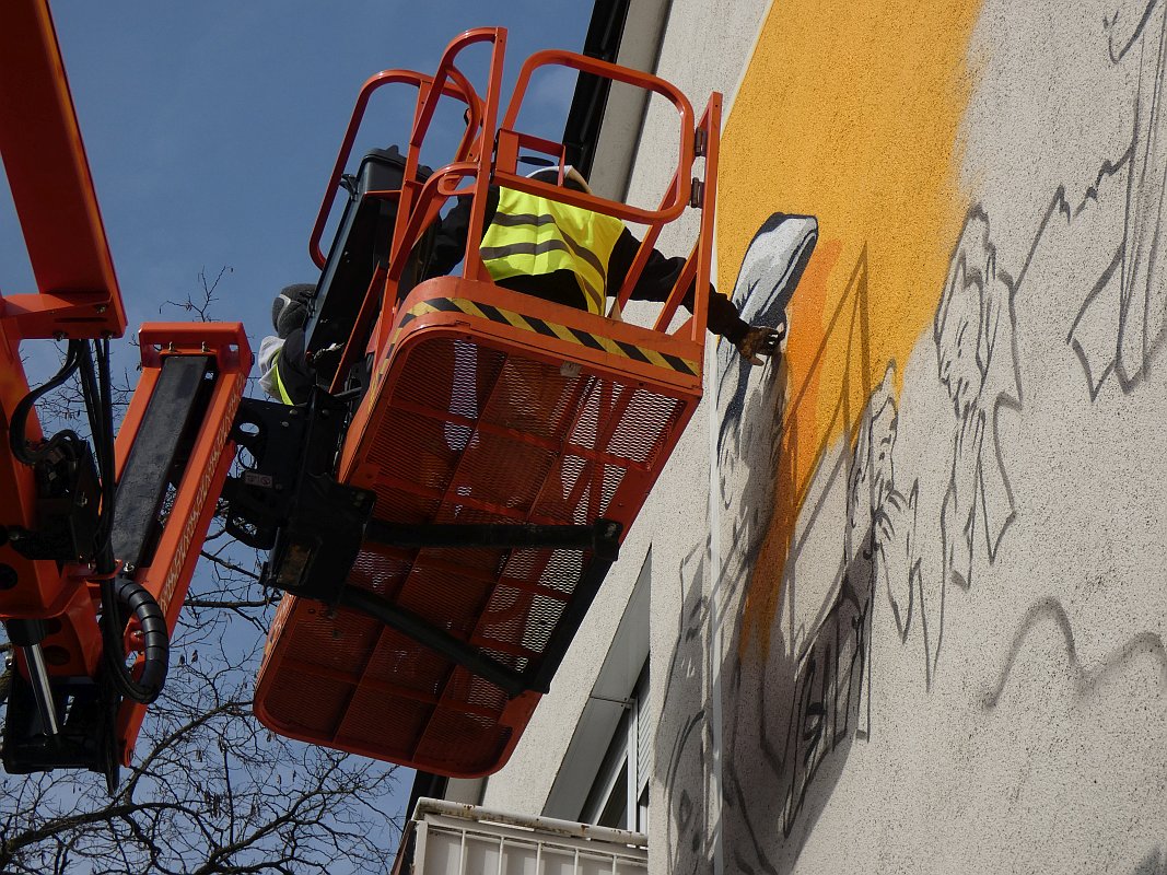 Kompliment an die Lackaffen, die von der Besichtigung der Wand bis zur endgültigen Fertigstellung des Entwurfs nur 17 Tage brauchten und den Entwurf innerhalb von 24 Stunden auf die Wand gebracht haben!