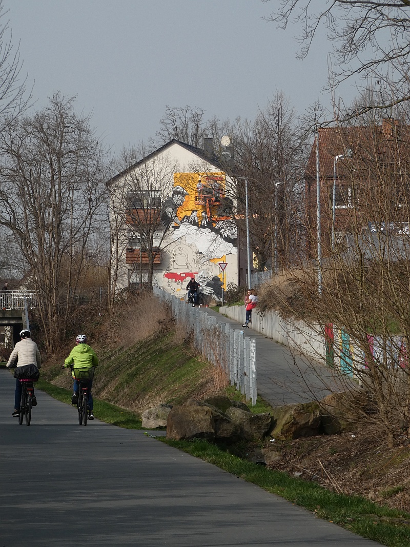 14:24 Uhr Blick von Süden auf die Brücke der Beckumer Straße (linker Bildrand), den heutigen Werseradweg und die Radweg-Verbindung zur Beckumer Straße (rechts) |